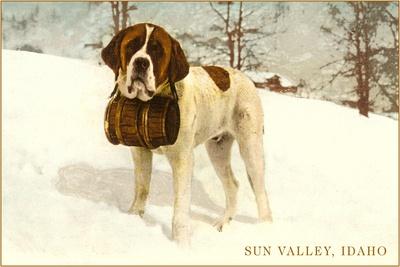 St Bernard With Keg In Snow Sun Valley Idaho Art Allposters Com